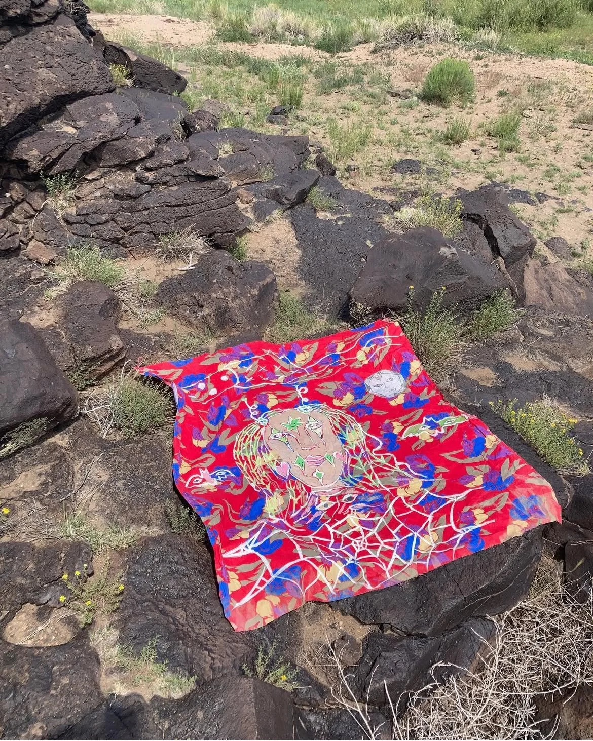 Ancient Pocket is the living culmination of Terra Heaven Eco-Art teacher and founder Mx. Van’s (Vanessa Santos) 30 years of practice as an Indigenous (Yaqui, Mexica, Kizh, Apache and Hopi descendant with Spanish, Portuguese, West and South East African ancestry), Disabled Interdisciplinary Artist, Healing Arts Practitioner (Reiki Master and Auto-Immune Protocol Herbalist), Bio-Dynamic Farmer, Bio-dynamic Beekeeper and Studio Arts Teacher. They work across textiles, ceramics, moving image, drawing, sound, painting and writing.